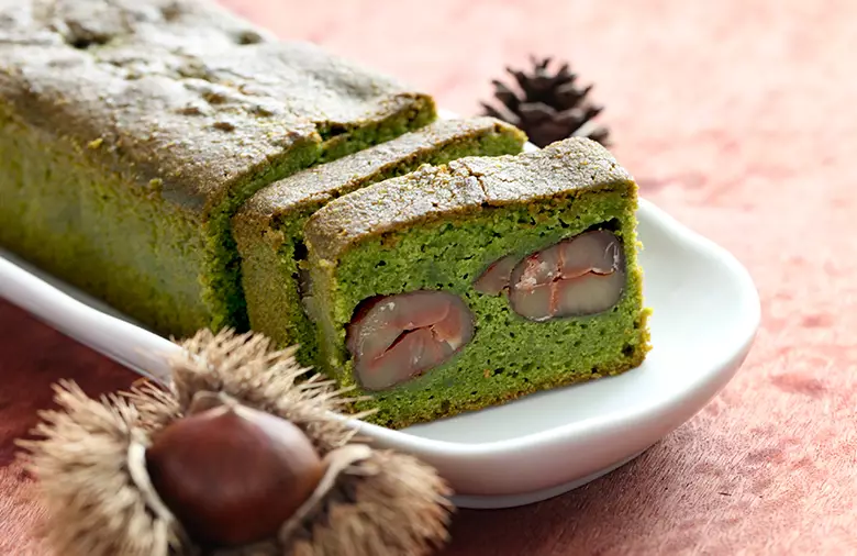 どこを切っても栗が見える、濃厚抹茶パウンドケーキ