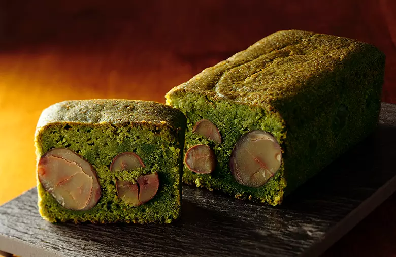 どこを切っても栗が見える、しっとり濃厚抹茶パウンドケーキ。栗の旨味をパウンドケーキ型にぎゅっと封じ込めて、ていねいに焼き上げました。