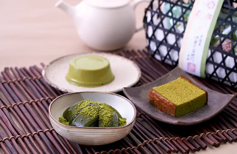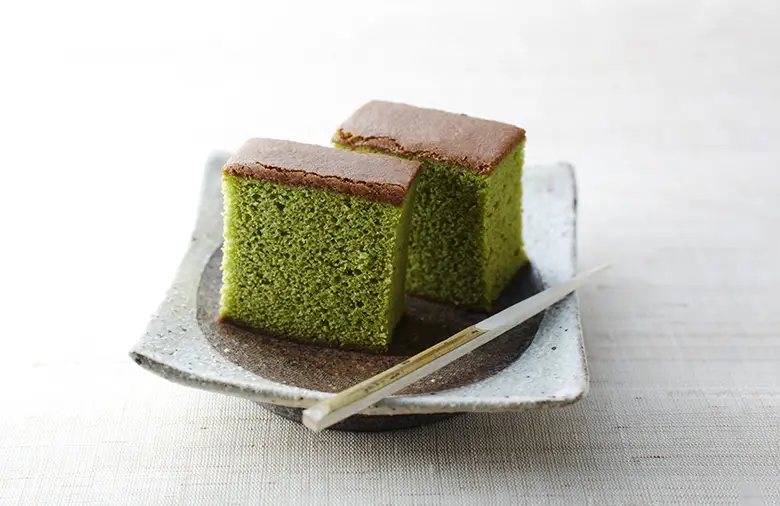 甘さとほろ苦さが調和した濃厚で緑鮮やかなカステラは、お茶とも相性抜群です。ぜひセットの煎茶とご一緒にお楽しみください。