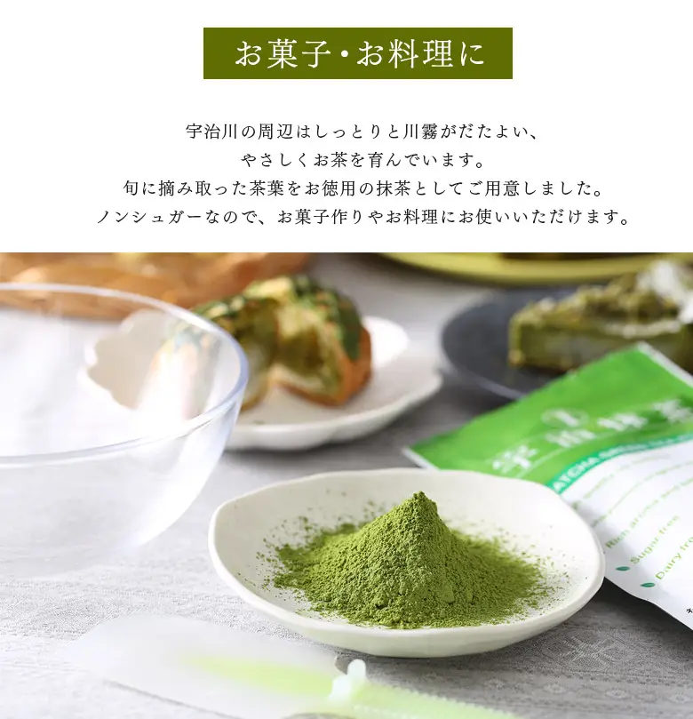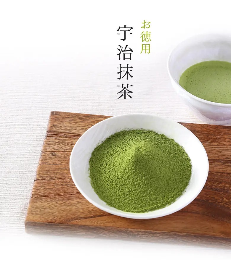 旬に摘み取った茶葉をお徳用の抹茶としてご用意しました。お菓子作りやお料理にどうぞ。