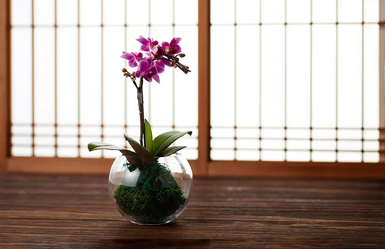 大ぶりな胡蝶蘭とは違い、マイクロ胡蝶蘭は手軽に持ち運べるので、飾る場所を選びません。