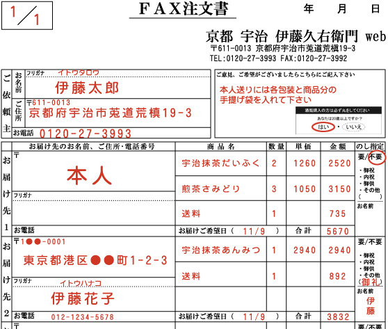 - FAX確認後、不明な点があった際には当店より確認のお電話をいたします。