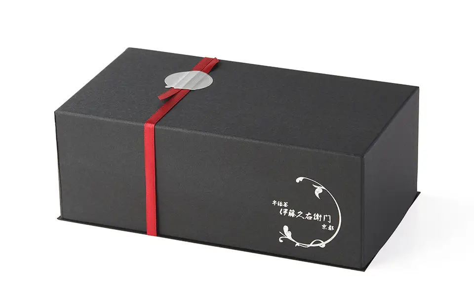 しっとりとした手触りの箱に一筋のつややかなリボンを