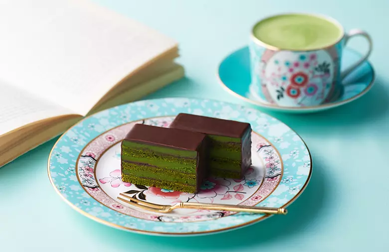 チョコレートの「生感」を大切に作り上げたガトーショコラ。濃厚なチョコレートの味と宇治抹茶の爽やかなほろ苦さに、ラズベリーのコンフィチュールがキレのある酸味を添えます。