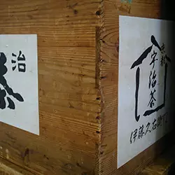 新茶時期に摘まれた茶葉は荒茶工程を終えた状態で茶葉専用の保管箱「茶びつ」に入れ、夏の間冷蔵庫で保存します。