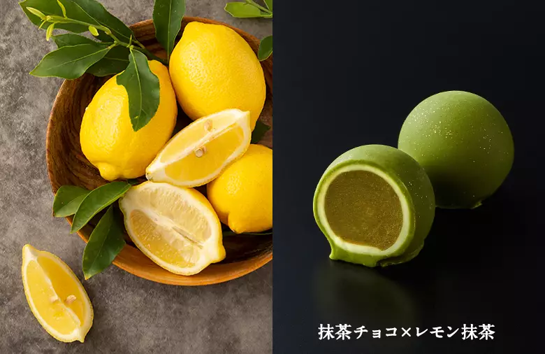 レモンを加えた抹茶ガナッシュを抹茶チョコレートでコーティング。