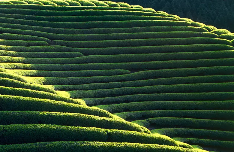 玉露とは、茶園をよしずや寒冷紗で覆い、直射日光を当てずに大切に栽培された茶葉のこと。