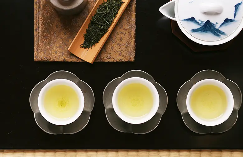 煎茶ならではの清々しい香りとすっきりとしたのど越しの良さ、濁りの少ない美しい水色が特長。