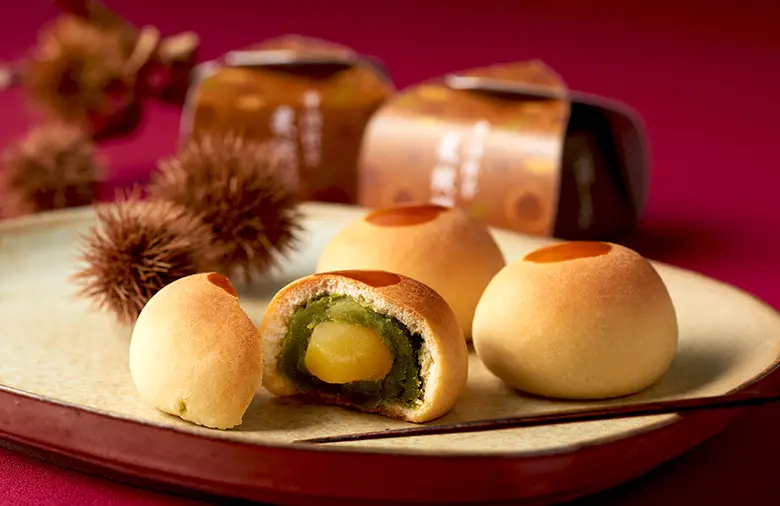 ふっくらした玉子皮に抹茶餡のほろ苦さと上品な甘さ、栗の風味が生み出す絶妙な味わいは、老若男女問わず人気の美味しさ。