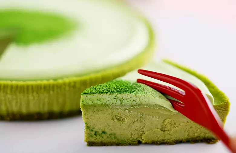 土台の生地には、抹茶との相性が良いクリームチーズとサワークリームをたっぷりと使用。