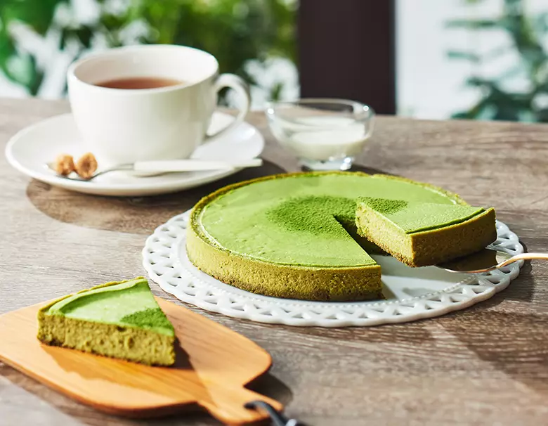 コク深いチーズのなめらかさの中に、宇治抹茶の清爽な香りとほろ苦さが広がります。