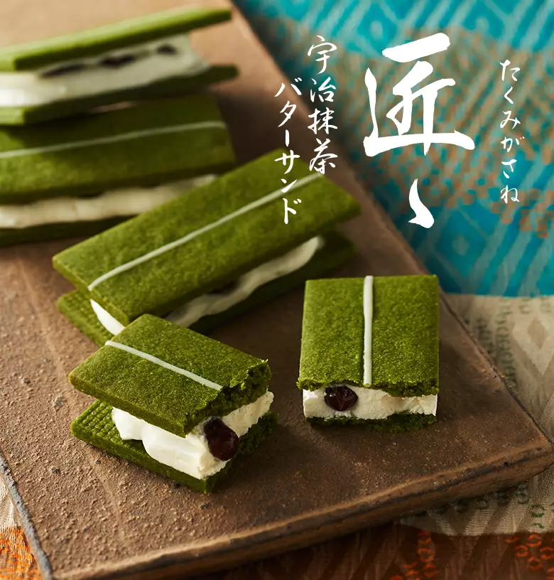 京都を拠点とする二つの匠が出会い、互いに培ってきた感性を持ち寄って「宇治抹茶バターサンド たくみがさね」が生まれました。