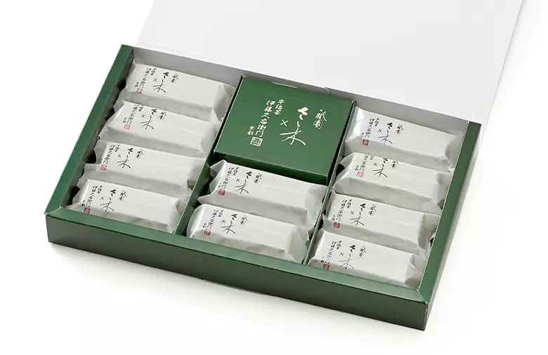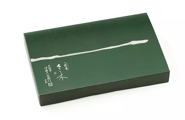 京都で最も予約の取れない店のひとつとして知られる京割烹「祇園さゝ木」と、天保3年より茶の品質を追求し続けるお茶屋「伊藤久右衛門」。京都を拠点とする二つの匠が出会い、互いに培ってきた感性を持ち寄って「宇治抹茶バターサンド たくみがさね」が生まれました。