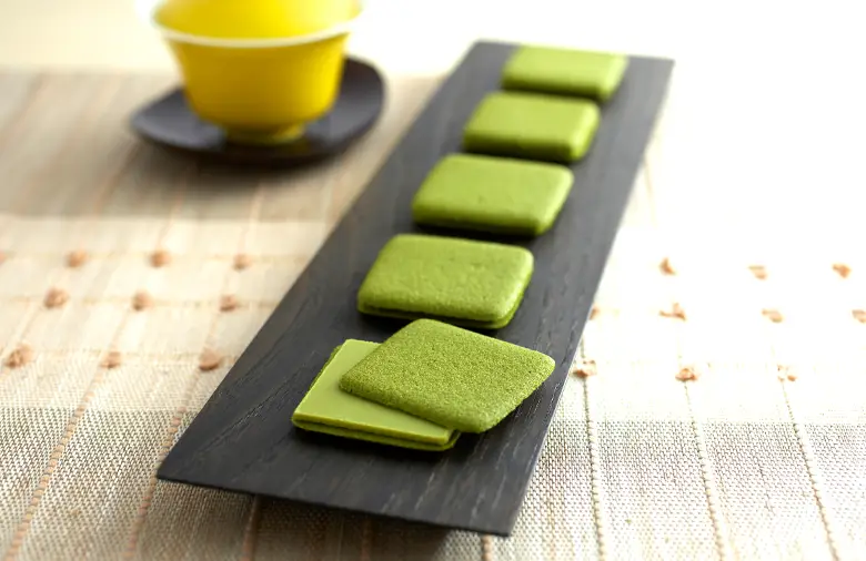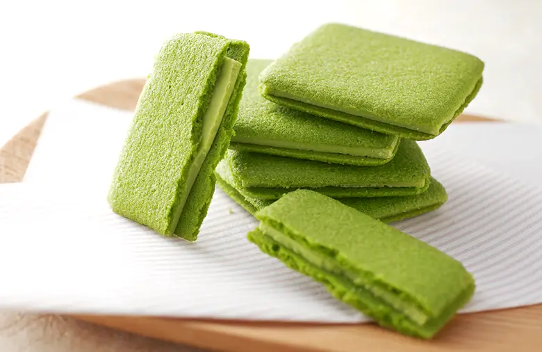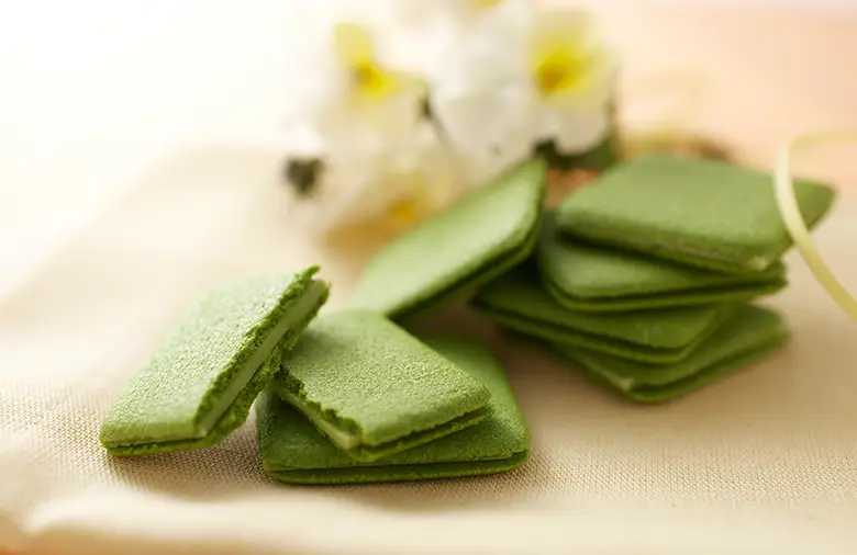 そこでこのラングドシャには焼き上げる熱に耐えうる色、香りの特に良い高級抹茶を選りすぐり、贅沢に使用しています。