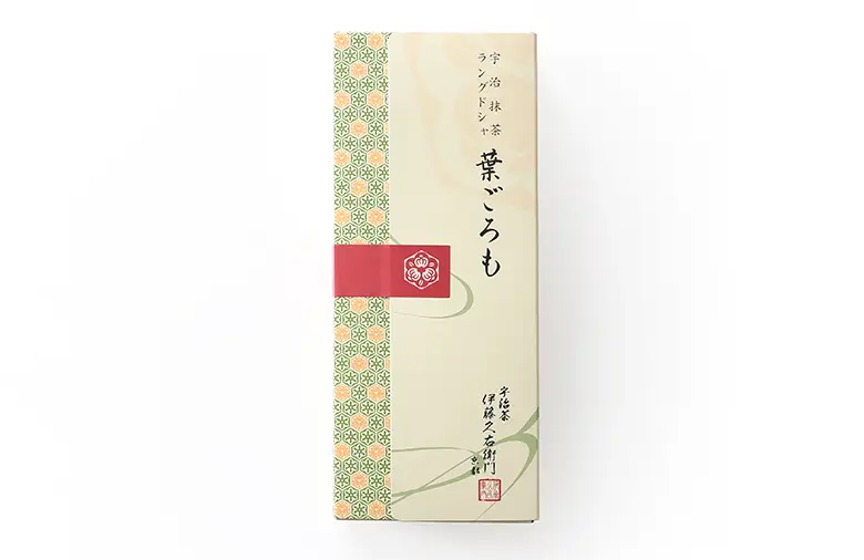 フランスに古くから伝わるお菓子「ラングドシャ」を、伊藤久右衛門自慢の高級抹茶を生地に練り込み、薄く口あたりの軽いサクッとした食感に焼き上げました。