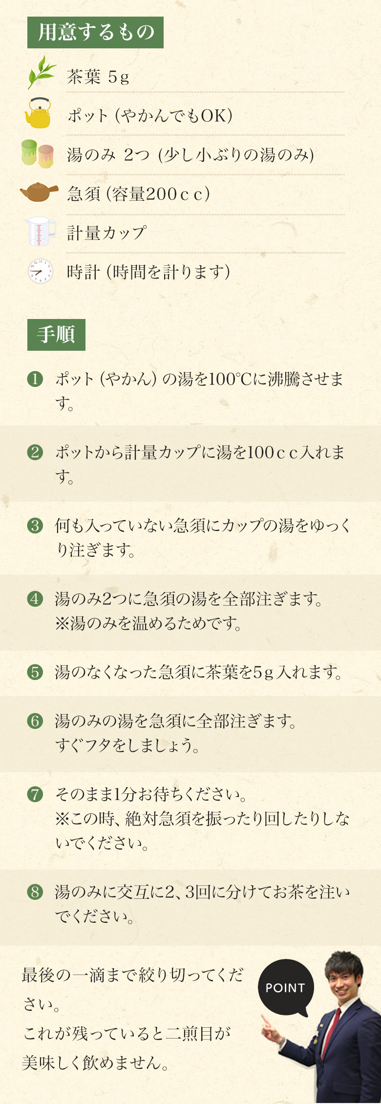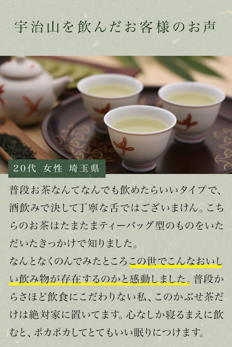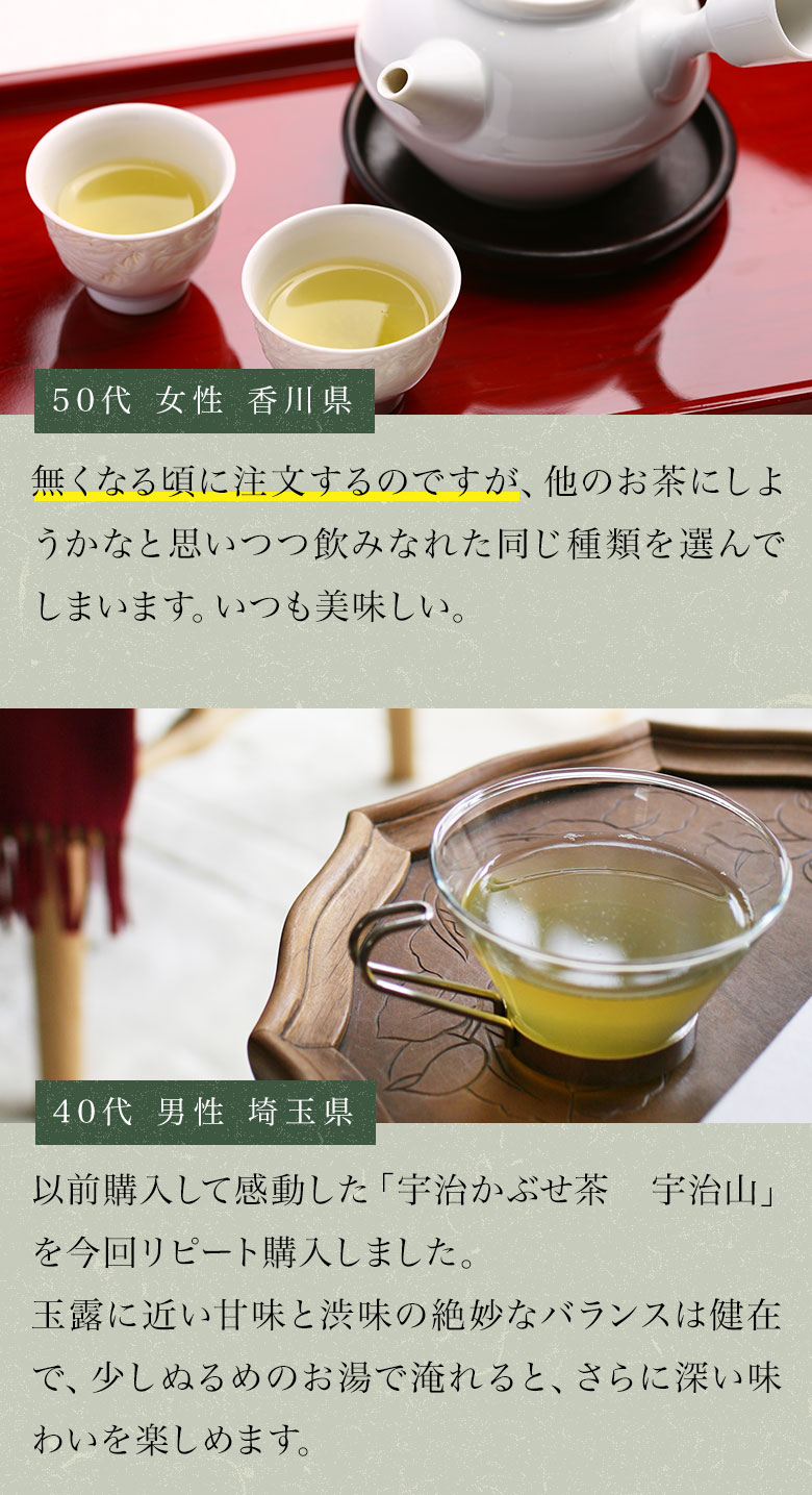 煎茶の爽やかさと玉露の旨味を併せ持つ、まろやかな味わいが魅力です。