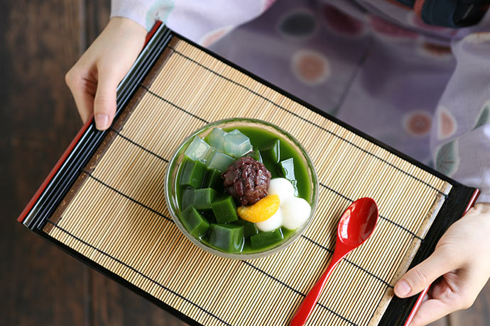 伊藤久右衛門の宇治抹茶あんみつは、挽きたての宇治抹茶、丹波大納言小豆などの京都ならではの素材を厳選、お茶屋ならではのこだわりの味を、手作りで皆様にお届けしております。