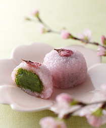 ほんのり桜色に染まった道明寺粉のつぶつぶとした食感とお抹茶の香りがふんわりと広がります。3月3日のひな祭りにもいかがですか。 -
