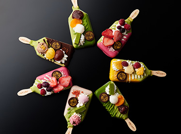 伊藤久右衛門茶房で人気のパフェがアイスになりました。定番人気の「まっちゃ」、季節パフェの「いちご」「さくら」「とろぴかる」「もんぶらん」。食べ歩きにいかがでしょうか。