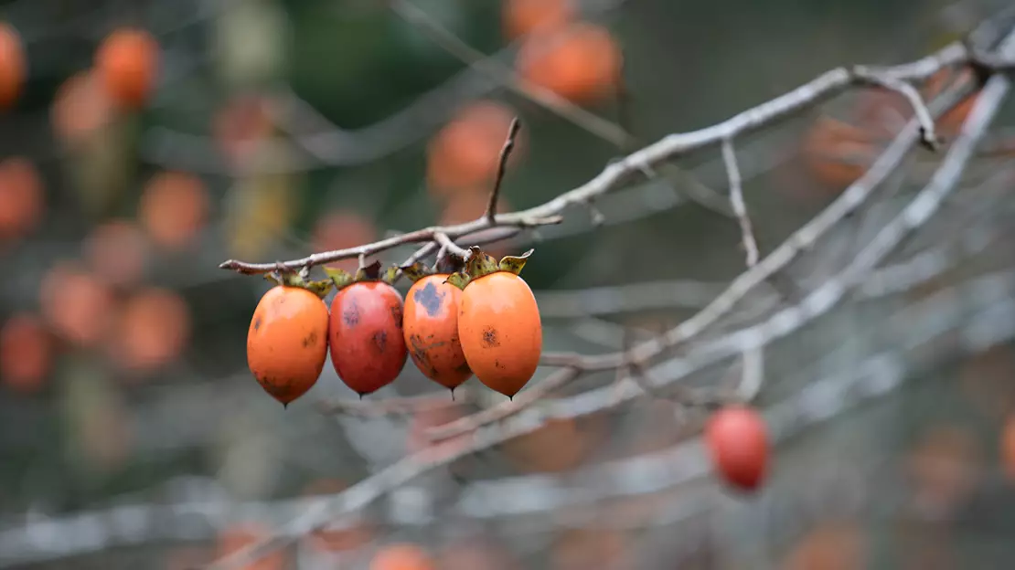 良いお茶が作れる土壌には良い柿が育つのだとか。つるの子柿がたわわに実をつけていました。