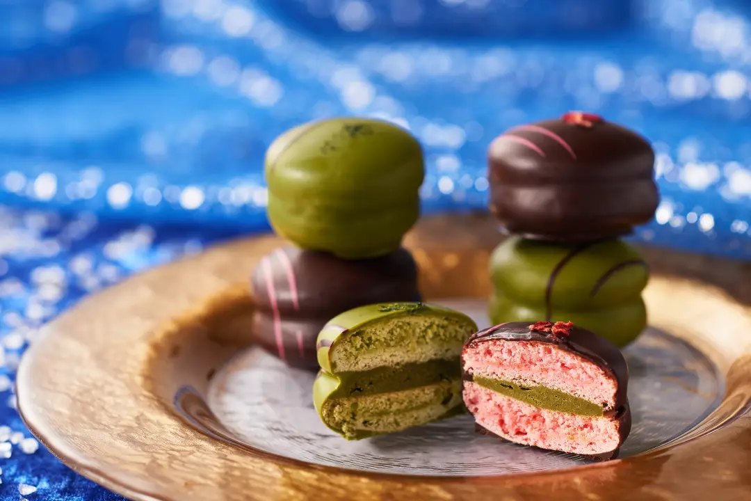 こだわりのガナッシュをサンドしたマカロンをチョコレートでコーティングした「ショコラマカロン」、「抹茶 & 抹茶」と「抹茶 & いちご」の2種のフレーバーをご用意しました。